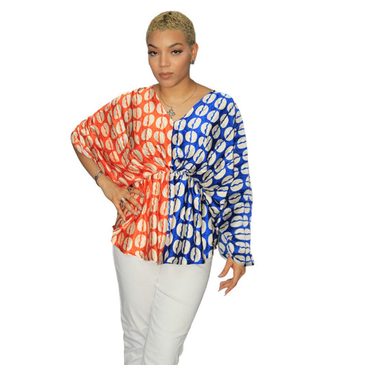 Blue and Orange Lightly Smoked Customed Made Blouse
