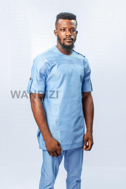Light Blue African Suit, African Men Clothing, African Men Suit, African Wedding Men
