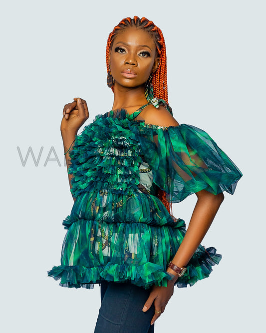 Lace and African Print Handkerchief Sexy Top, Net Top, African Print Top
