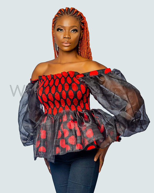 Organza Smocked Off Shoulder Top, African Womens Clothing, Womens Clothing, Off the shoulder top