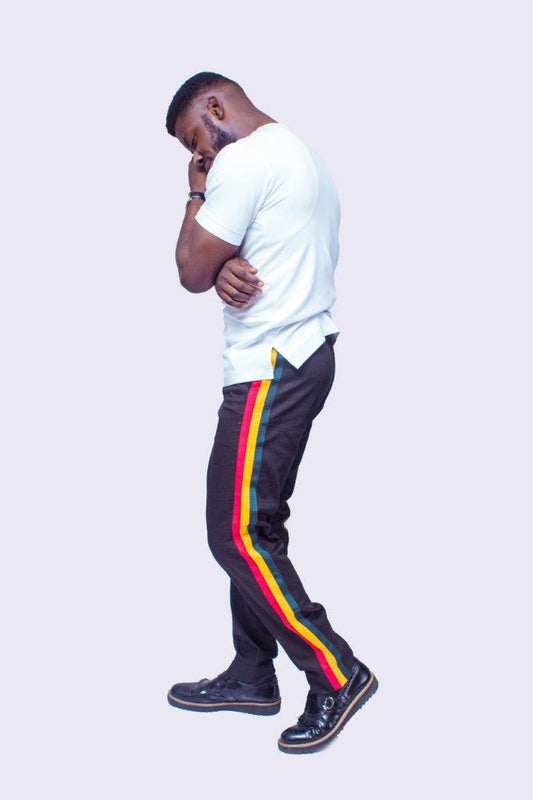 Side Stripes Jeans Pants, Side Stripes Denim Pants, Mens Clothing, Men Wear Red and White