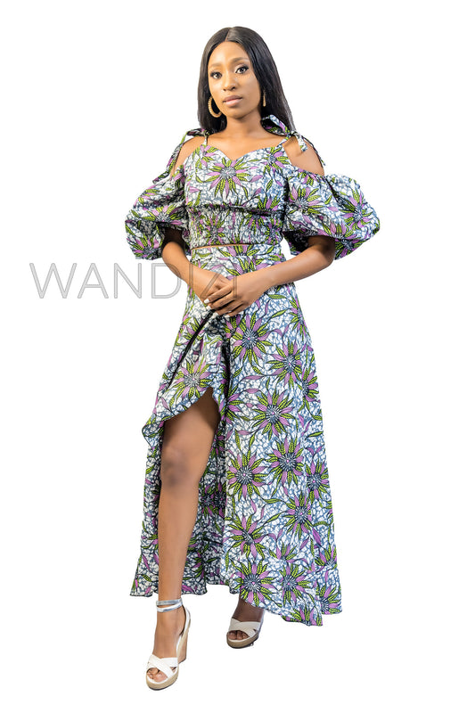 Smocked Elastic Top and Ruffle Wrap Long Skirt, Ankara Crop Top and Wrap Skirt