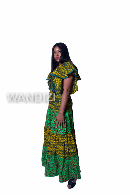 Ankara Off the shoulder Smocked Maxi Dress, African Print Dress, Ankara Maxi Dress, African Clothing