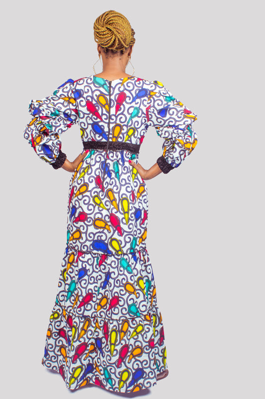 Ankara Maxi Dress with Butterfly sleeves, African Print Long Dress, Ankara Maxi Dress