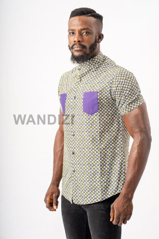 Purple mix Ankara Shirt with Patch Pockets, African Men Clothing, African Mens Wear, Ankara Shirt