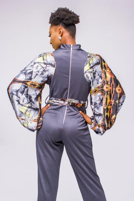 New Chiffon Jumpsuit, Grey Jumpsuit Women, Jumpsuit with Chiffon Sleeves, African Print Jumpsuit,