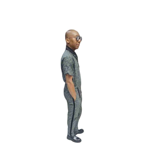 Green Animal Print Mix Mens Jumpsuit with roll up sleeves
