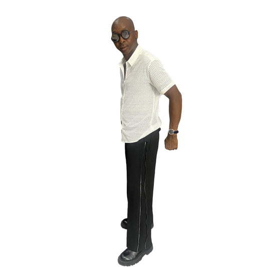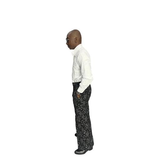 Silver and Black Satin Leg Pants, Wide Leg Pants
