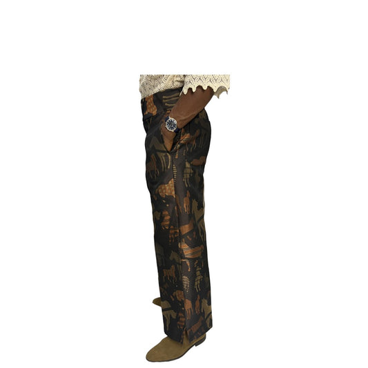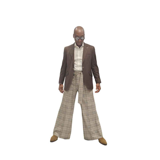 Brown Plaid Wide Leg Pants, Wide Leg Pants