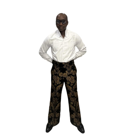 Gold and Black Satin Leg Pants, Wide Leg Pants