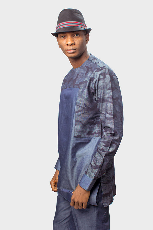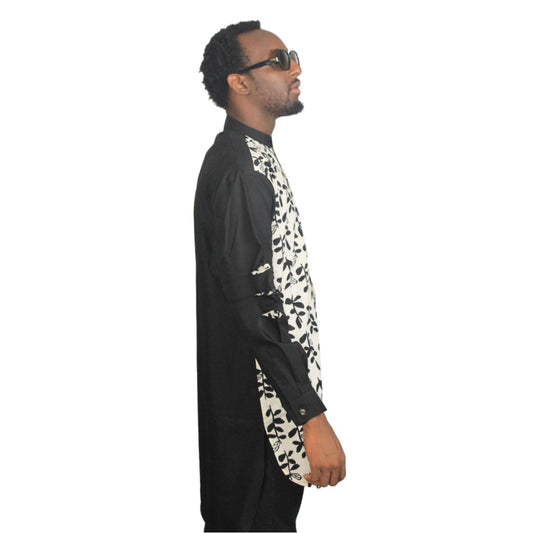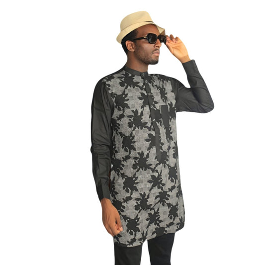 Patterned Black Jean Tunic, Mens Tunic, Mens Shirt, Mens Top