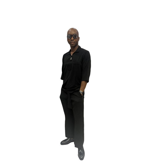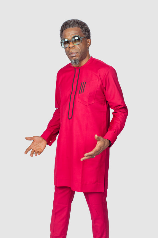 Red Fuchsia African Suit with black bias detailing, African Men's Suit, Traditional outfits