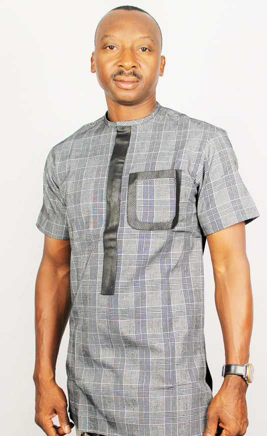 Black and White Plaid Dress Shirt, Wandizi Black and White Tartan Shirt, African Men Clothing,