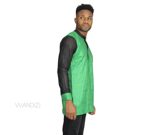 Green Long Sleeve Linen Shirt with Net Sleeves, Linen Shirt, Mens Clothing, Mens Wear, Mens Shirt