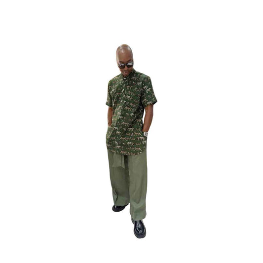 Brown and Green Ankara Shirt, African Men Clothing, African Mens Wear, Ankara Shirt