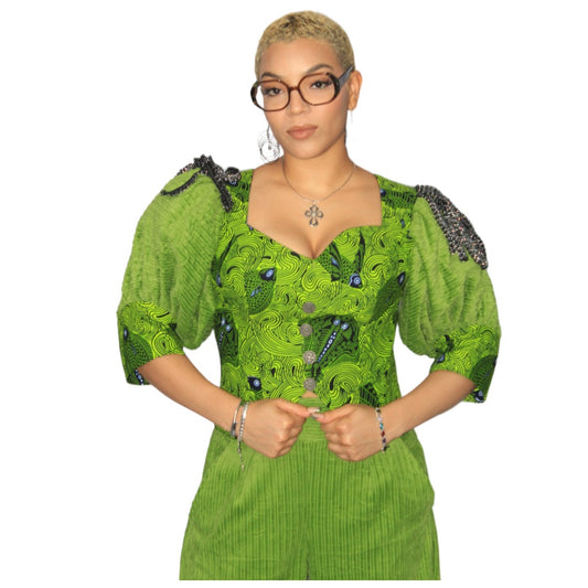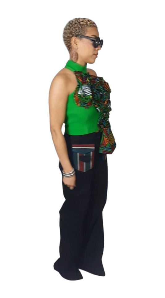 Green Wide Cut Pants with Ankara Overlay Marching Top
