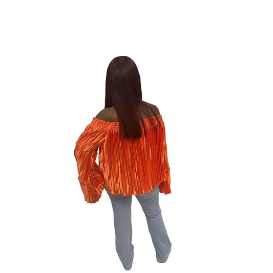 Orange Off the shoulder Pleated Silk Top, Off Shoulder Top, Pleated Top