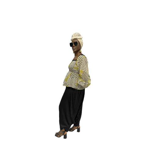 Black and White Smocked Blouse, Women Customed Made Blouse and Tops