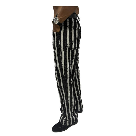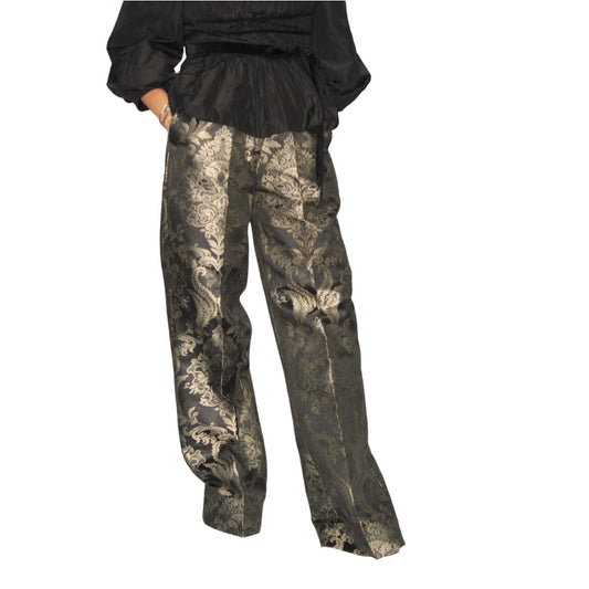 Black And Silver Mix Wide Leg Jacquard/Damask Pants