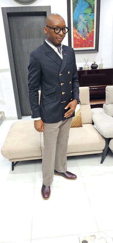 Elevate your formal wardrobe with this masterfully tailored Double-Breasted Blazer. Crafted from a premium Virgin Wool Mix, this piece offers a sharp, structured silhouette combined with the breathable comfort of high-quality wool fibers.